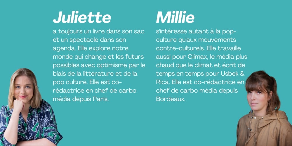 → Vous organisez un événement, vous avez repéré un livre (ou vous l’avez écrit !), votre nièce a lancé sa compagnie d’éco-théâtre, vous êtes photographe passionné·e par l’écologie, faites-nous un petit message sur l’adresse redaction@hellocarbo.com ou glissez dans nos DMs sur Instagram pour nous signaler ça et on en fera peut-être un article à retrouver sur www.hellocarbo.com/media/ Nous, on est à Bordeaux et à Paris et on ne demande qu’à élargir nos horizons en découvrant ce qui se passe dans les autres villes, villages et campagnes !